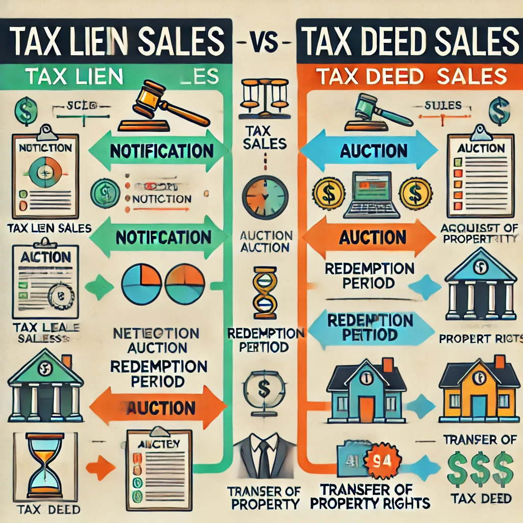 A property tax sale occurs when a homeowner fails to pay their property taxes. There are two main types of property tax sales: tax lien sales and tax deed sales.
